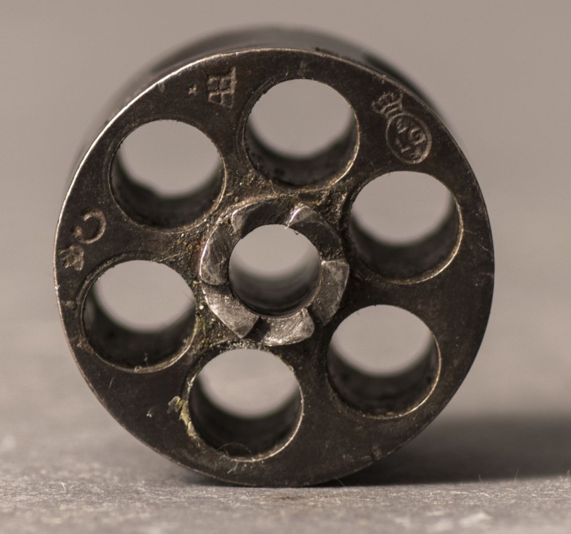Rear of cylinder: ELG over a star in a crowned oval: Proof house mark after 1893.