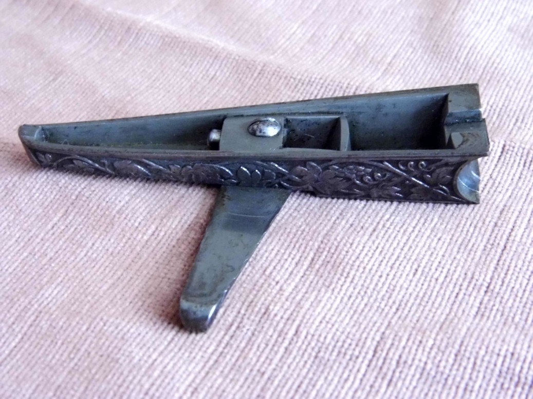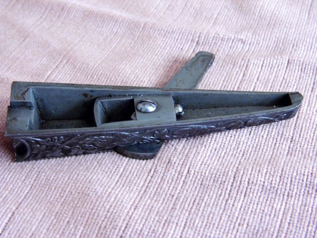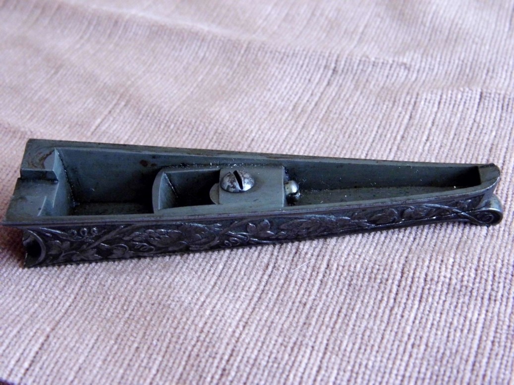 L'arme porte des gravures cynégétiques en partie à fond creux, ce qui n'est pas si courant.