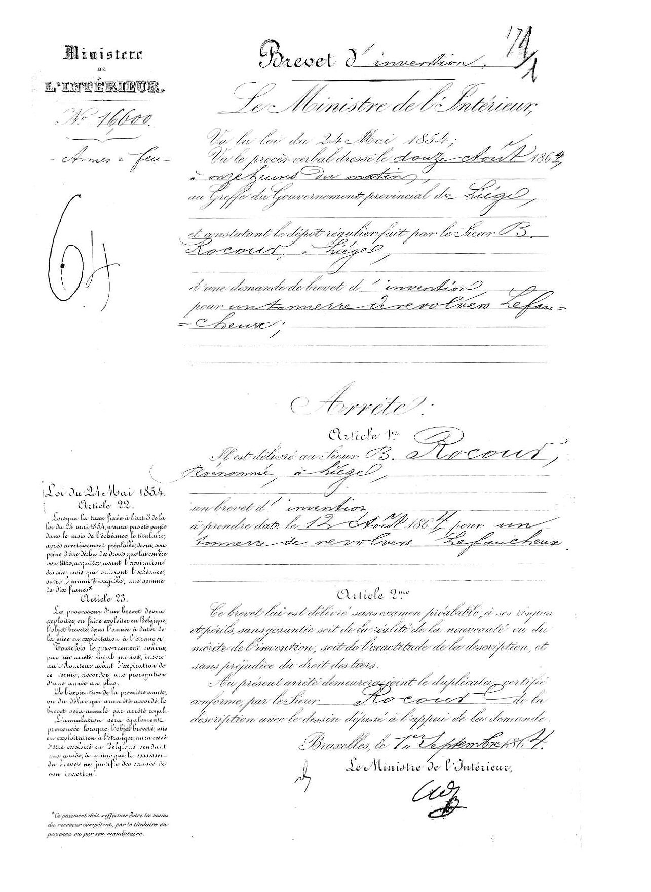 fabricant-assembleur du revolver. Cet armurier liégeois particulièrement réputé