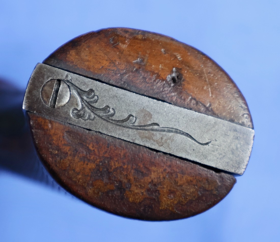 très belle pièce, avec ses belles poignées quadrillées (peut-être en noyer), son