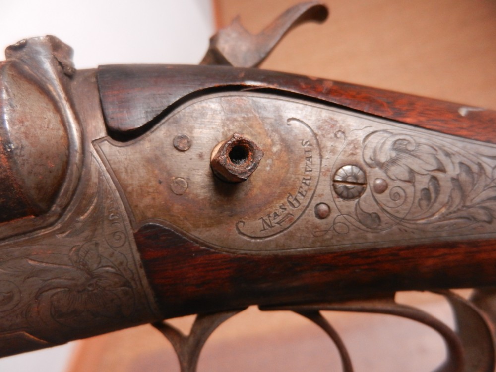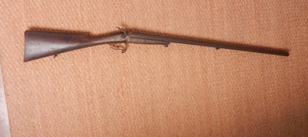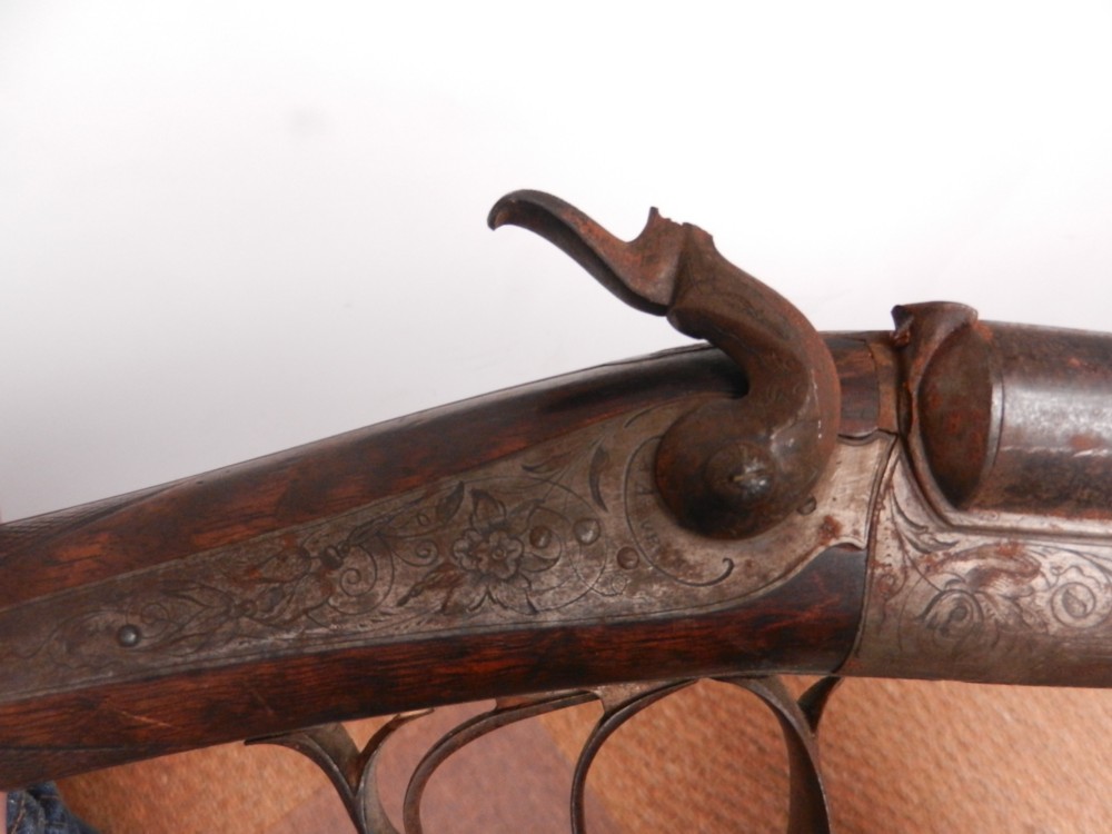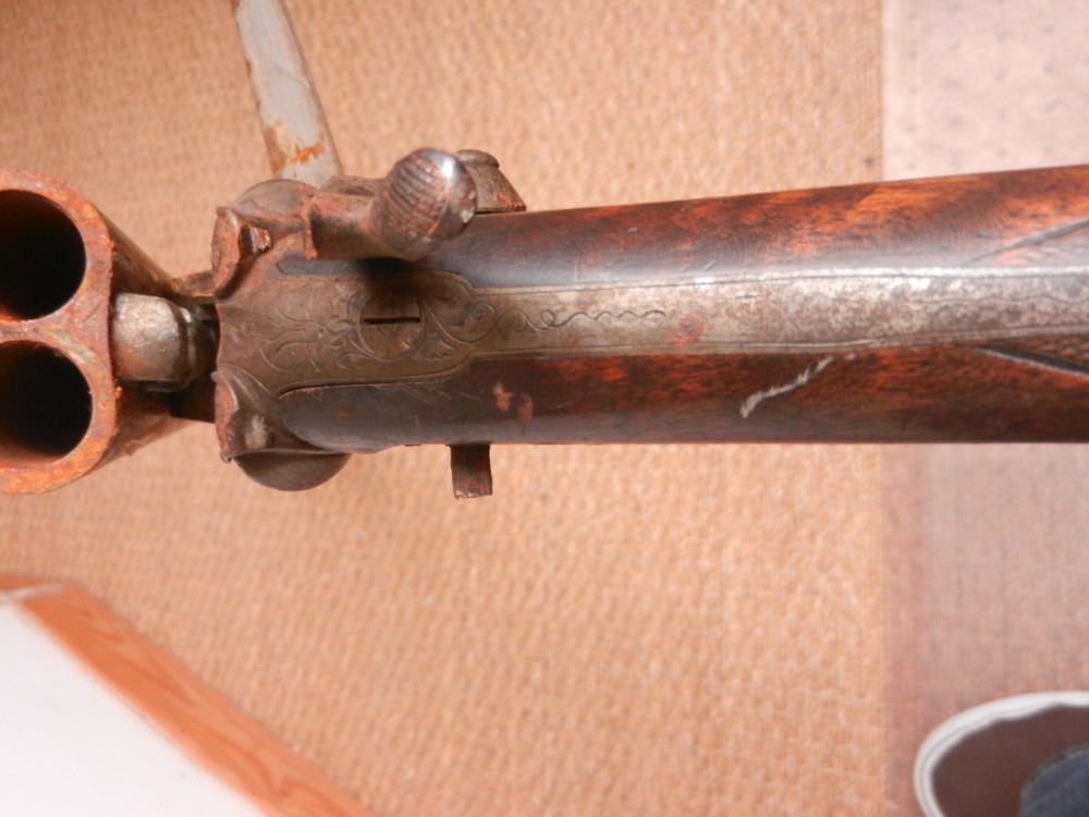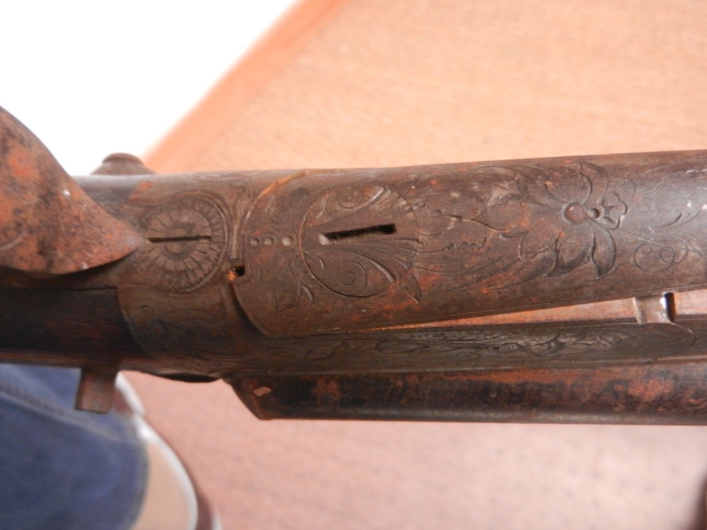d’un fusil de chasse juxtaposé à broche à l’état d’épave (corrosion généralisée,