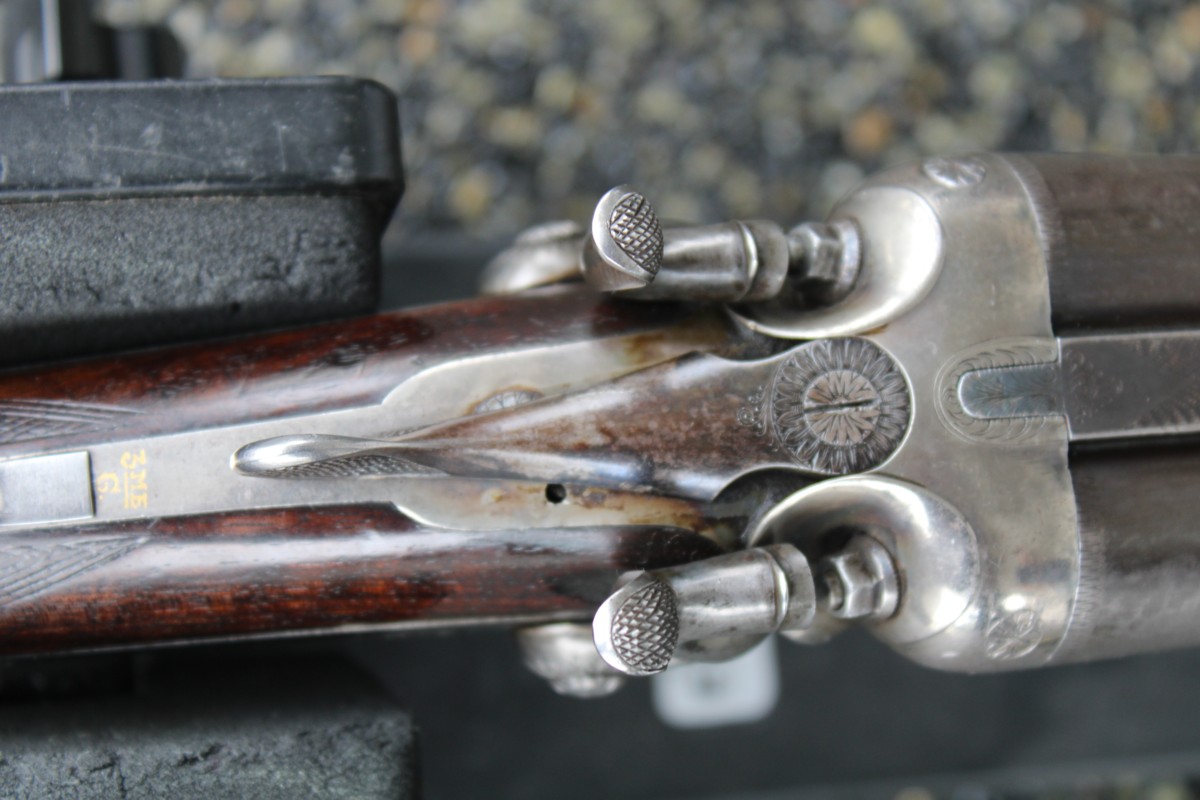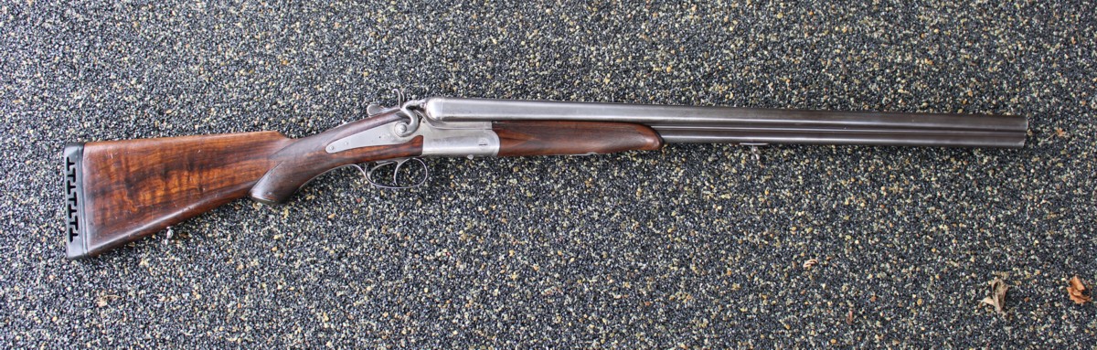 Two hammers and two triggers are shown for the upper left and right barrels, but