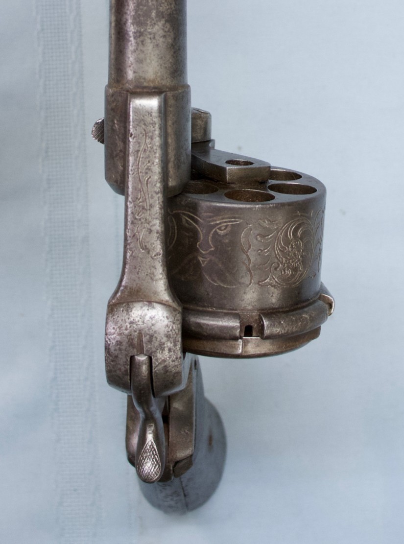 Barillet basculant avec bouclier anti-recul (20 ans avant la fabrication de revolvers à barillet basculant).