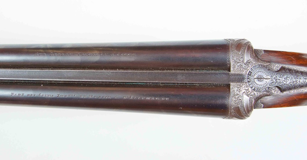 LEBEAU-COURALLY A LIEGE FABT DES COURS IMPLLES DE RUSSIE ET D’ALLEMAGNE (LEBEAU-COURALLY in Liege Manufacturer of the Imperial courts of Russia and Germany): mark of AUGUSTE LEBEAU-COURALLY, street Fond of Tawes, 19-23 in LIEGE. The house was founded in 1865.Il acts of a very famous house for the quality of its weapons. The house still currently exists. (See the site).