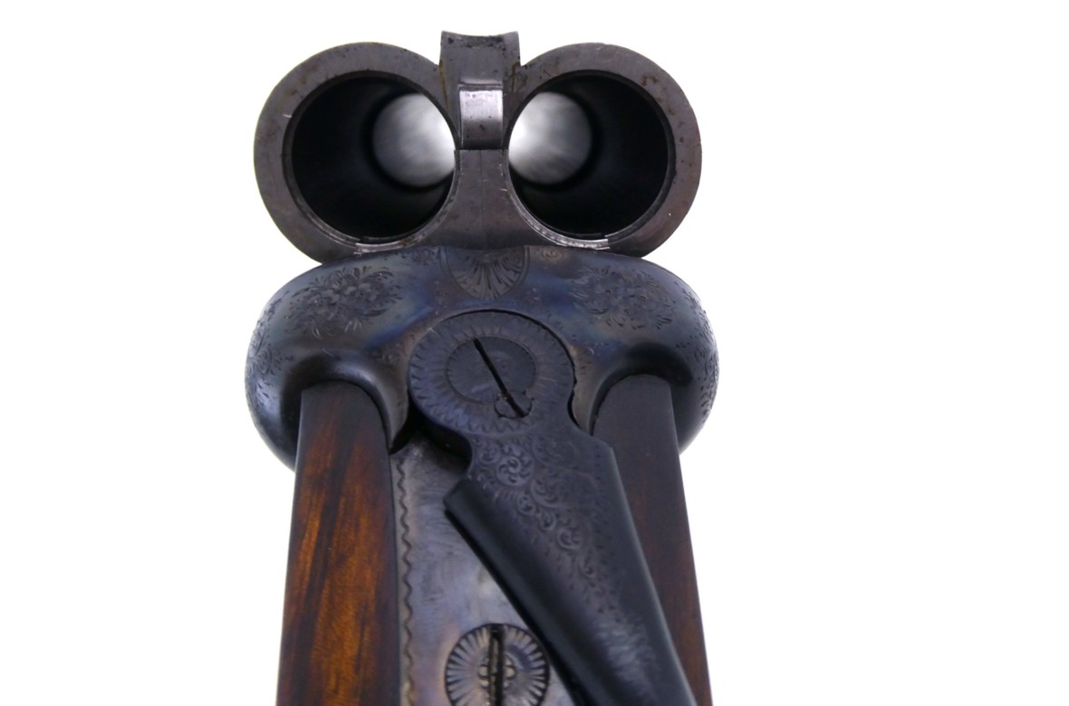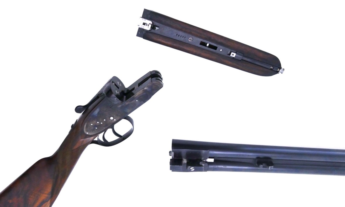Shotgun to percussion with locks behind and external hammers. Didn't the photographs enable me to determine the mode of opening?