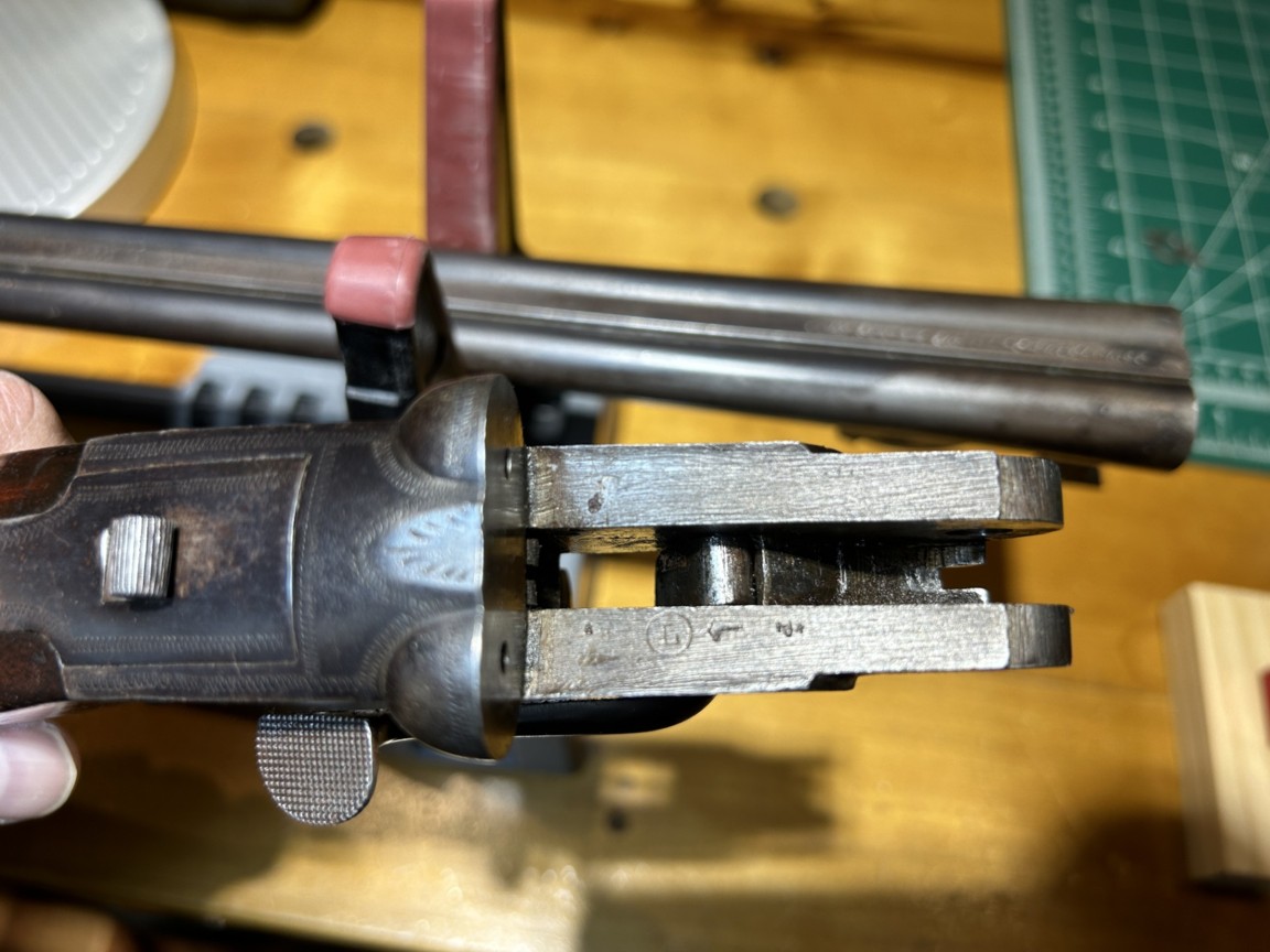 Side-by-side barrels, double trigger, internal hammer and opening by key of the