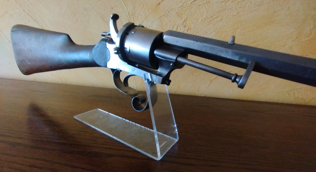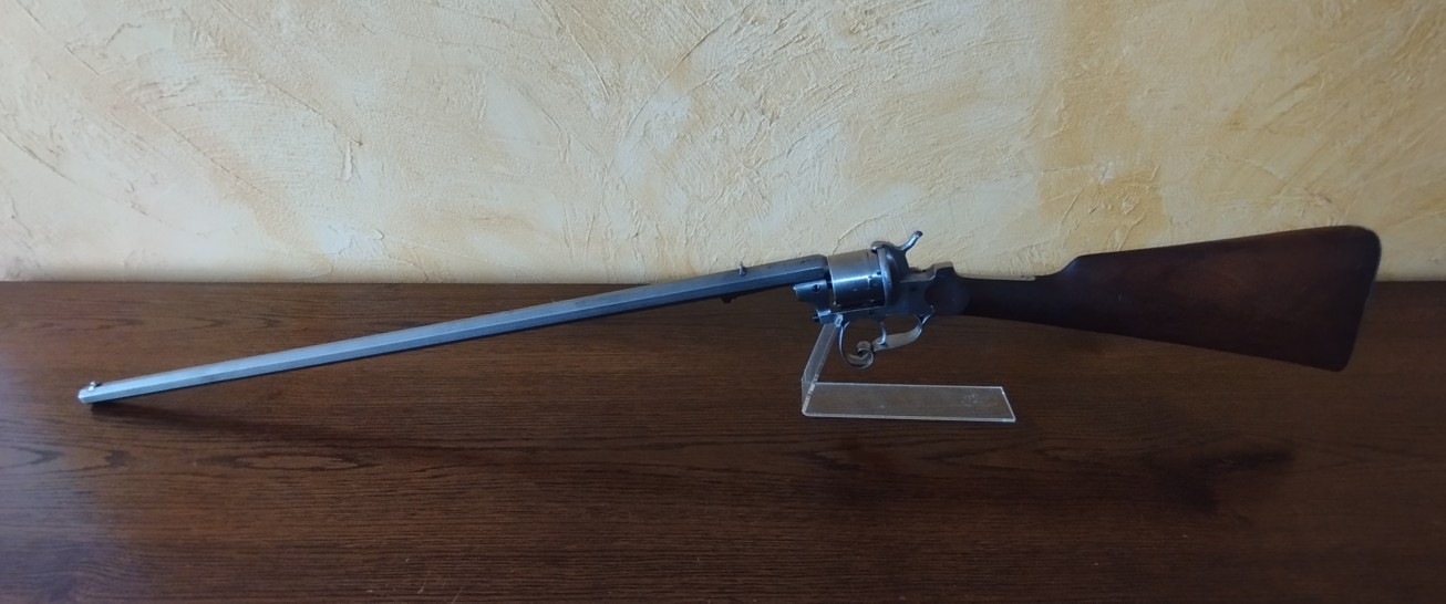 Voici une belle carabine-revolver système Lefaucheux en calibre 12 mm à broche.