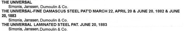 S.J. & D, this mark was deposited by company SIMONIS-JANSSEN & DUMOULIN of Liege which deposited eight patents of 1883 to 1886.