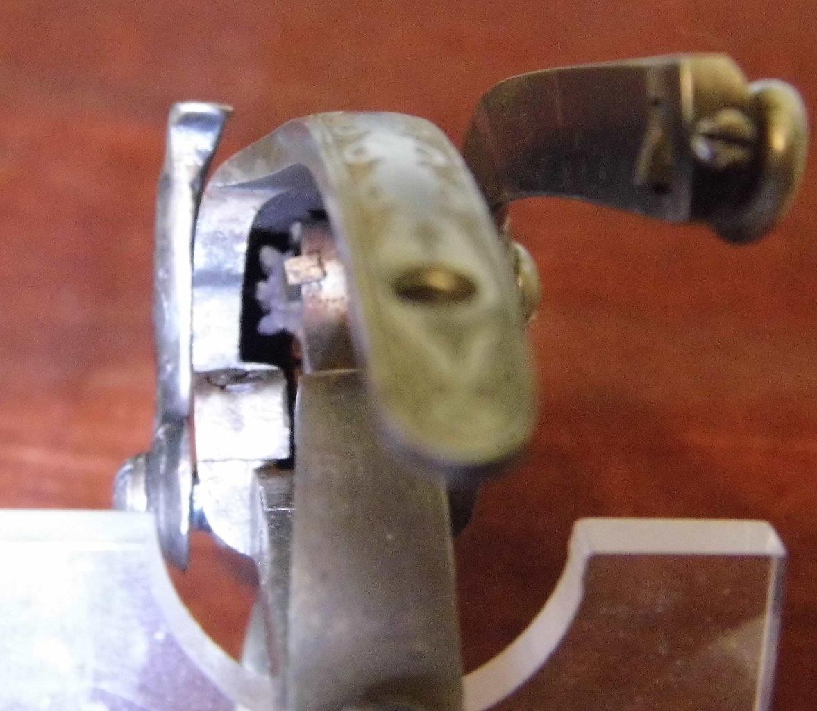 the system. The lateral lever controls a flat toothed wheel, which meshes with a