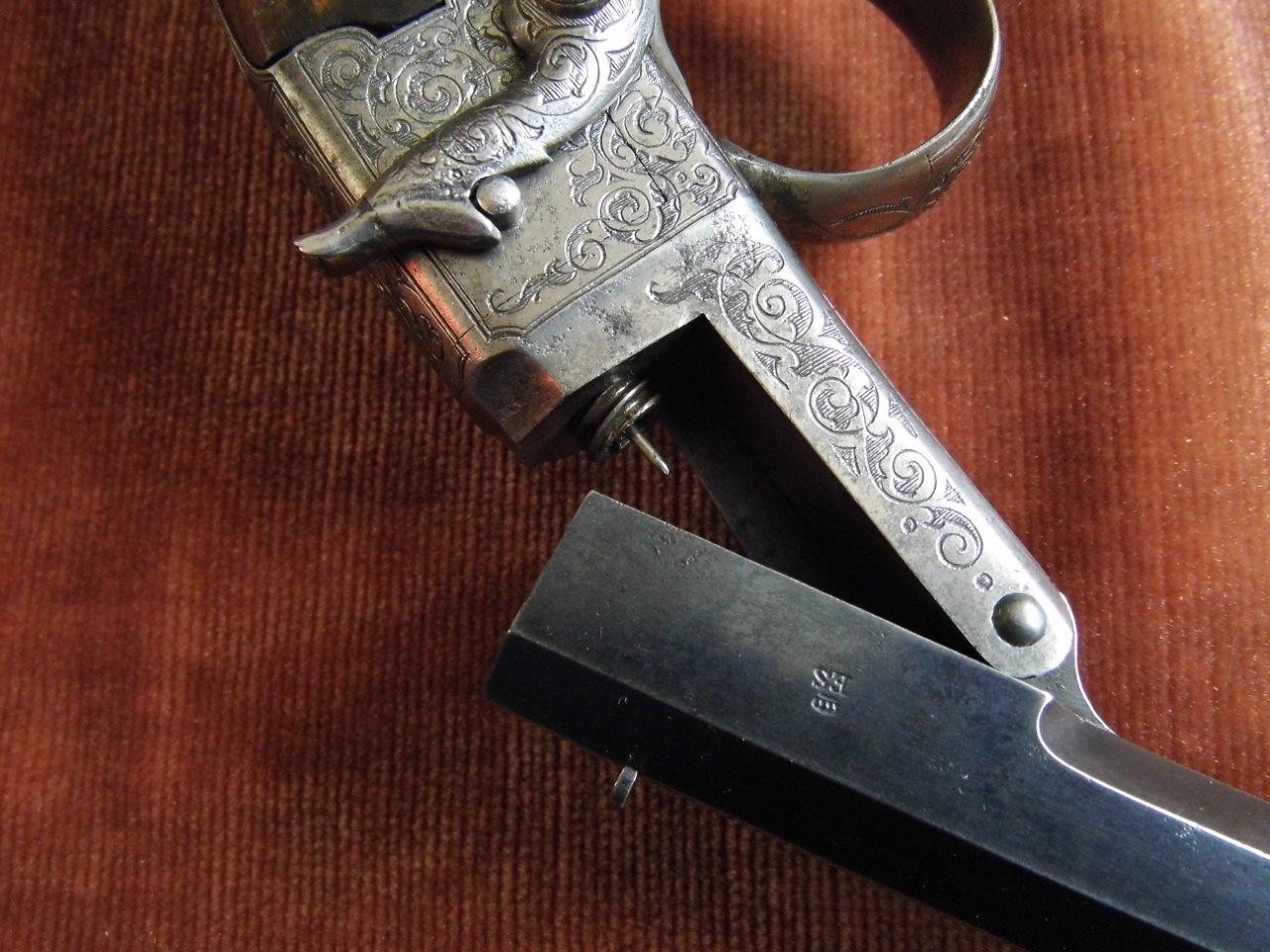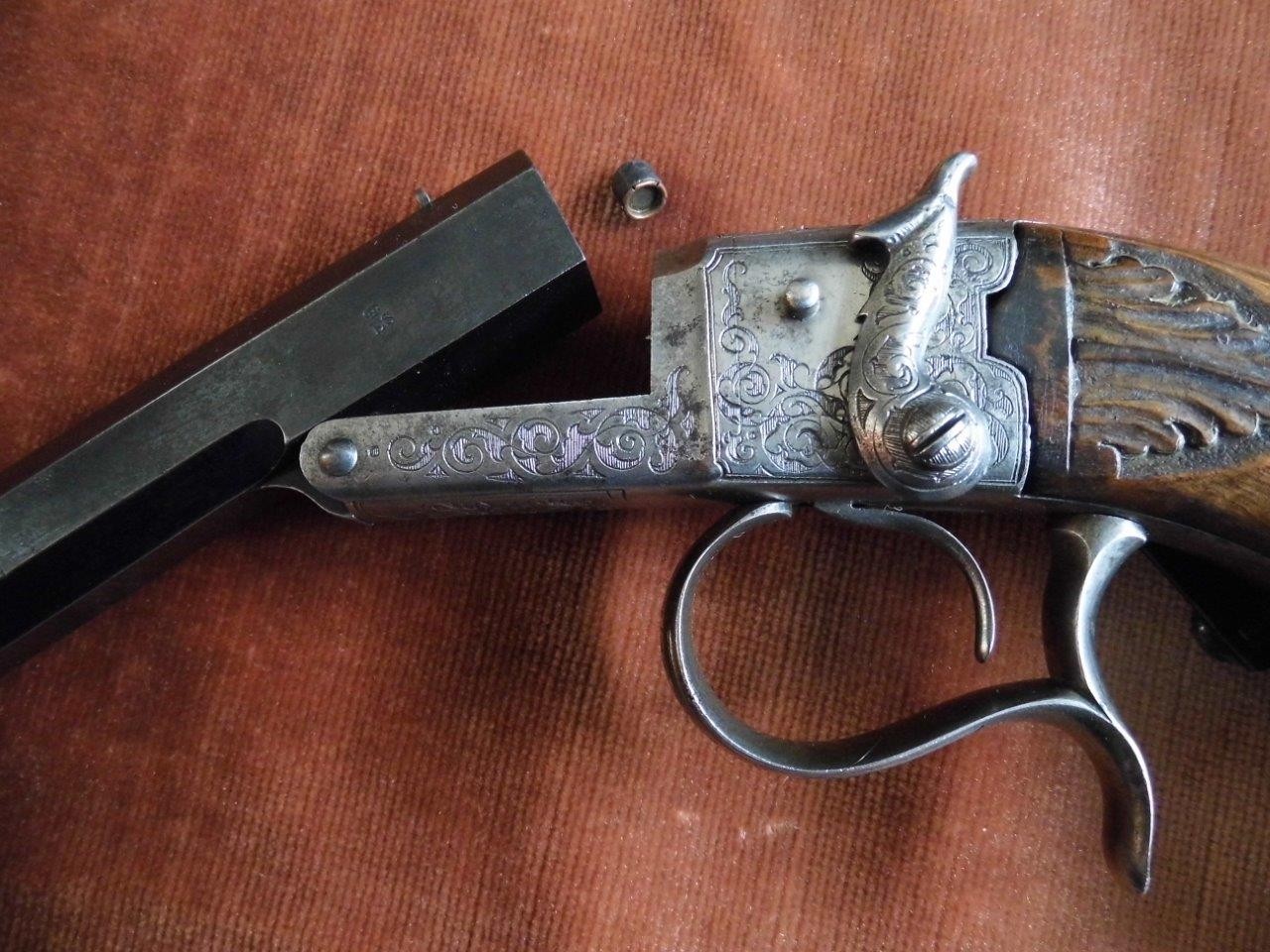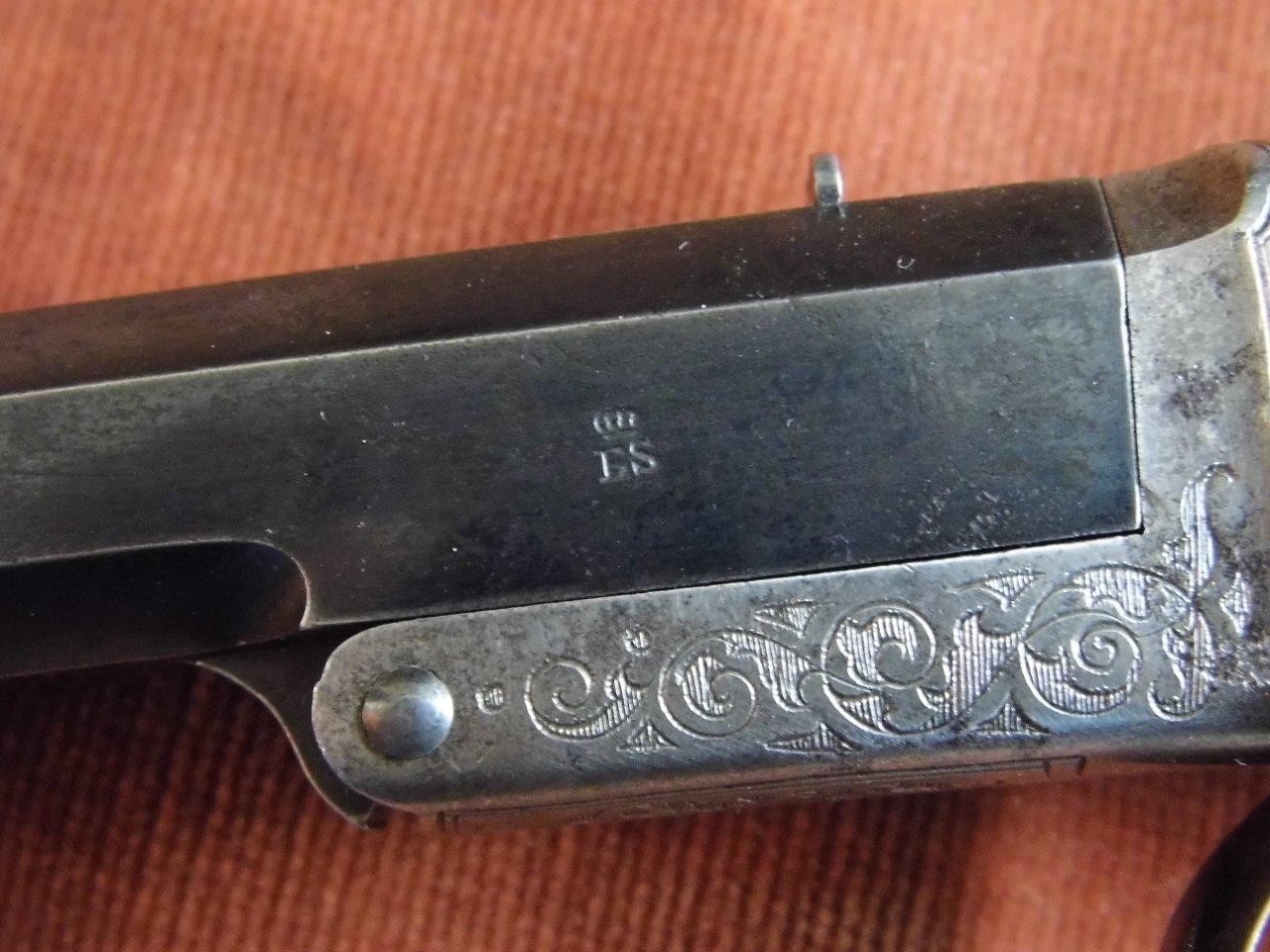 In conclusion, this 9mm Flobert caliber parlor pistol is the product of a Liège gunsmith named Edouard Spirlet (with some uncertainty between the two namesakes).