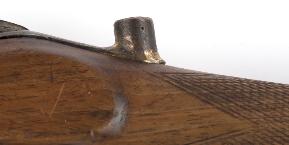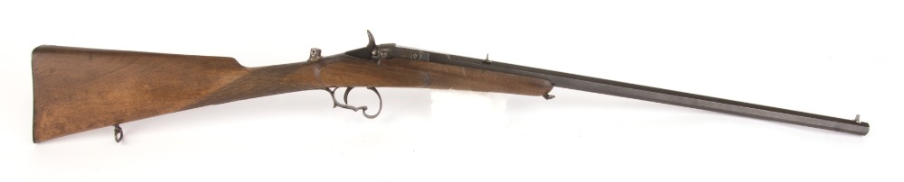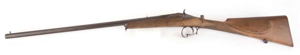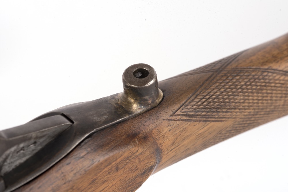 Voici une inhabituelle carabine en calibre 22 long Flobert. Le bloc-culasse est
