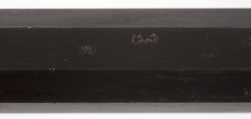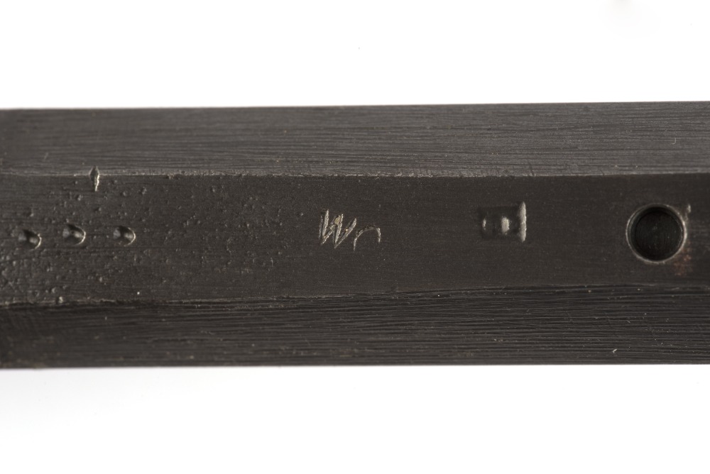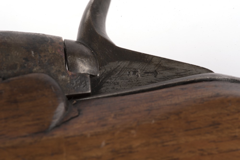 numéro de série, sur le canon, près d’un autre marquage non identifié (un animal