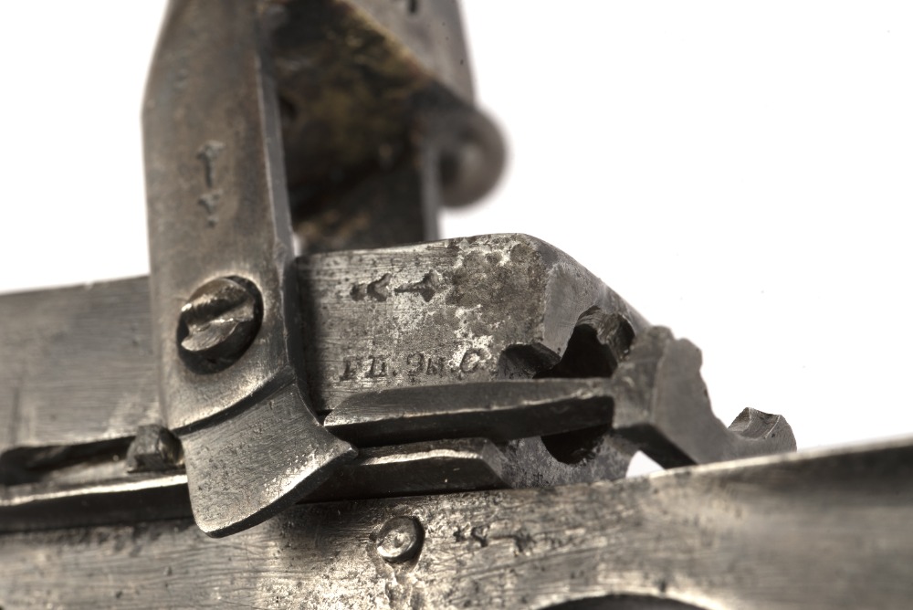 Comme souvent dans l’armurerie liégeoise pour les pièces de qualité moyenne, cette arme ne porte volontairement aucun marquage de fabricant. L’anonymat de celui-ci sera donc respecté puisqu’il n’est pas possible de faire autrement.