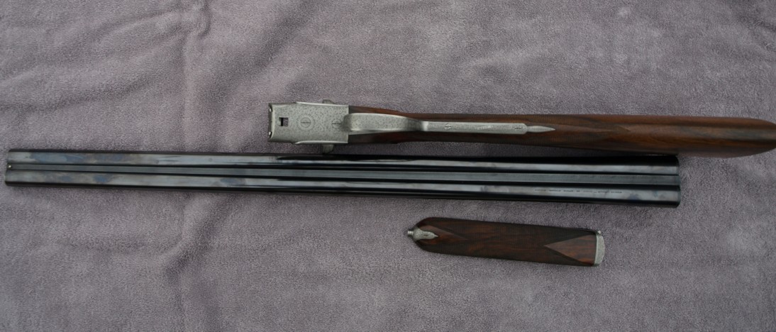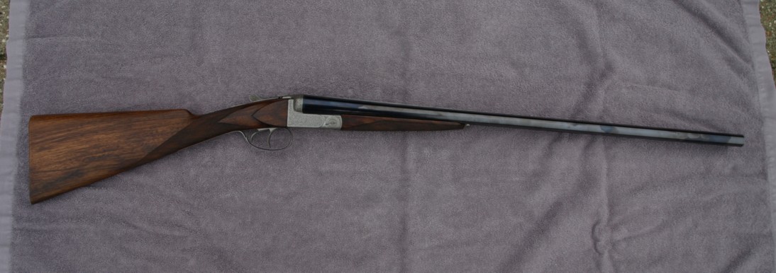 "hammerless" shotgun with two side-by-side barrels, very classic with its double