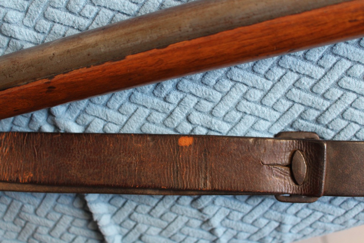 complet avec sa baguette et sa sangle en cuir. Il a été récupéré dans une maison