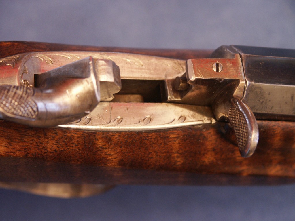 rinceaux et son pontet muni d’un repose-doigt montrent qu’il s’agit d’une