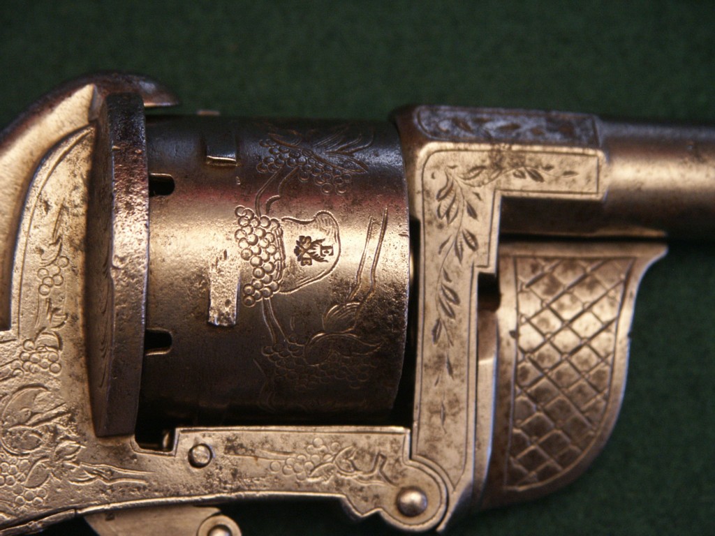 finition : parties métalliques gravées de motifs floraux, queue de détente