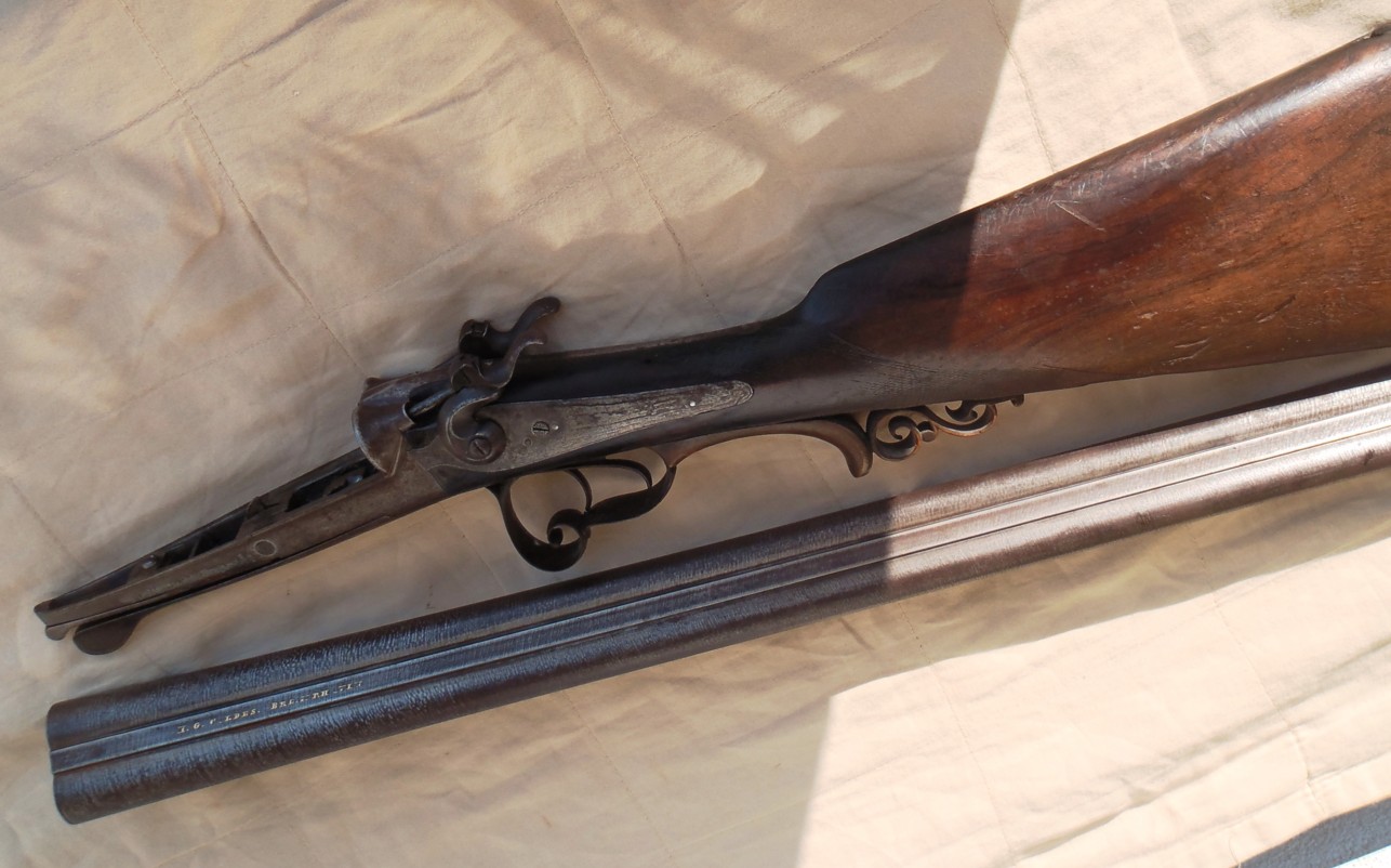 shotgun juxtaposed to external hammers of Belgian manufacturing sold by house