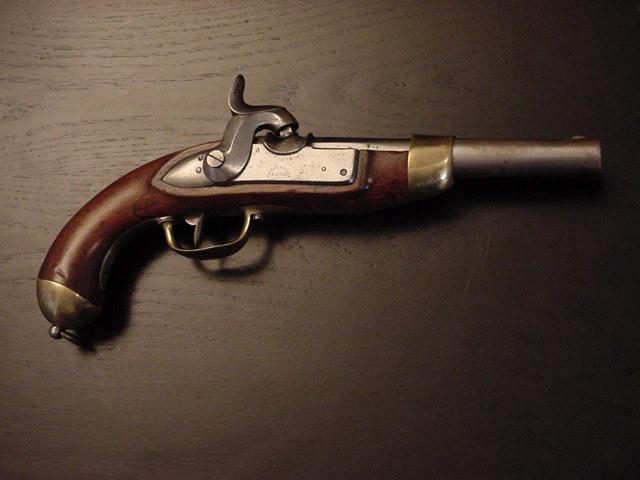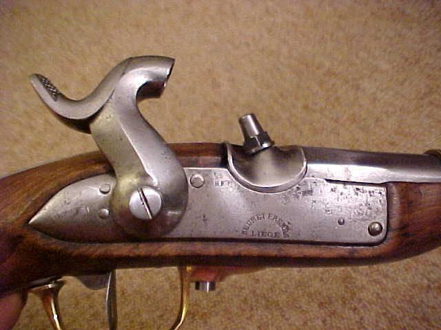 It's a SWISS Mle 1842 cavalry Pistol, caliber 18 mm, percussion lock, the front cut at right angle , marking of BEURET Frères, in LIEGE.