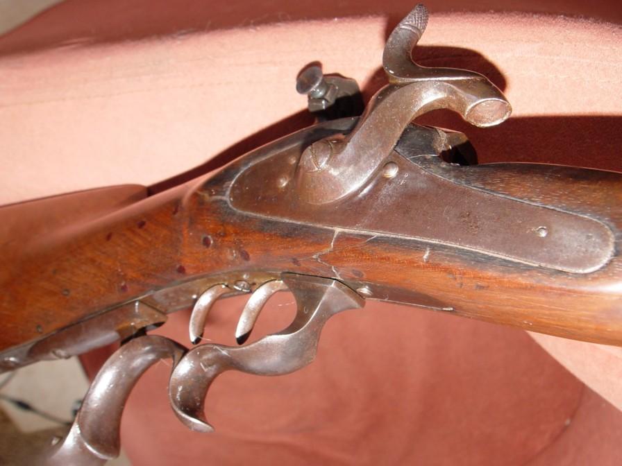 shotgun with two pairs of barrels, probably one with smooth barrels and the