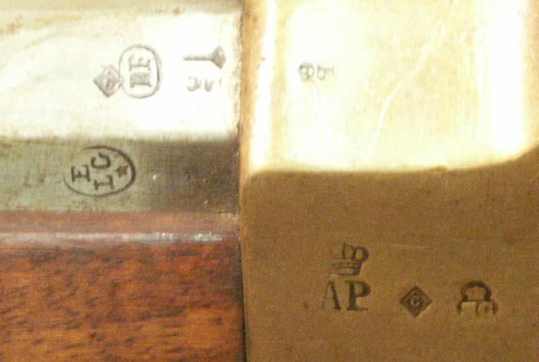 BE in an oval lying could be the mark of BEURET Frères (BE 1836/1879) street Behind St Thomas, 23 in Liege. They used also mark BF crowned and an eagle on 2 escutcheons.