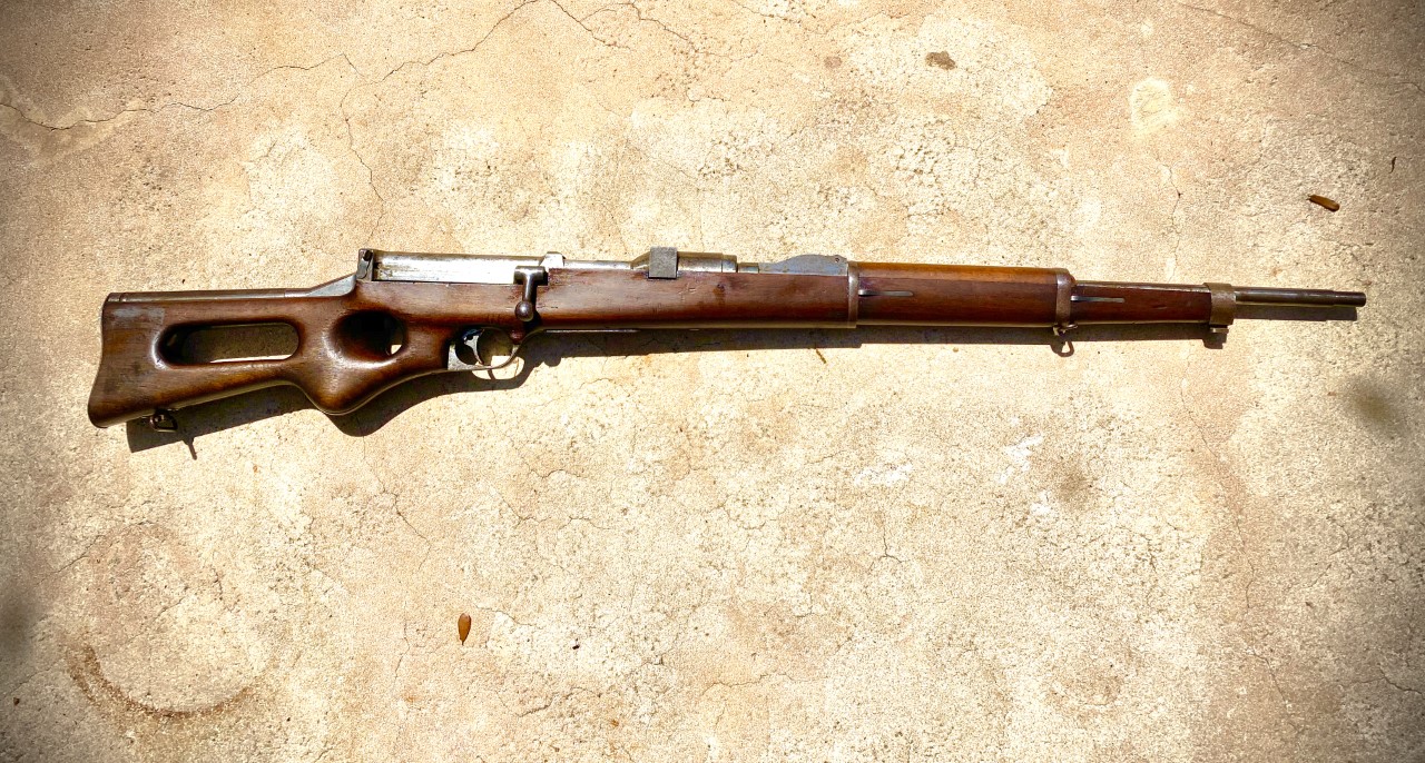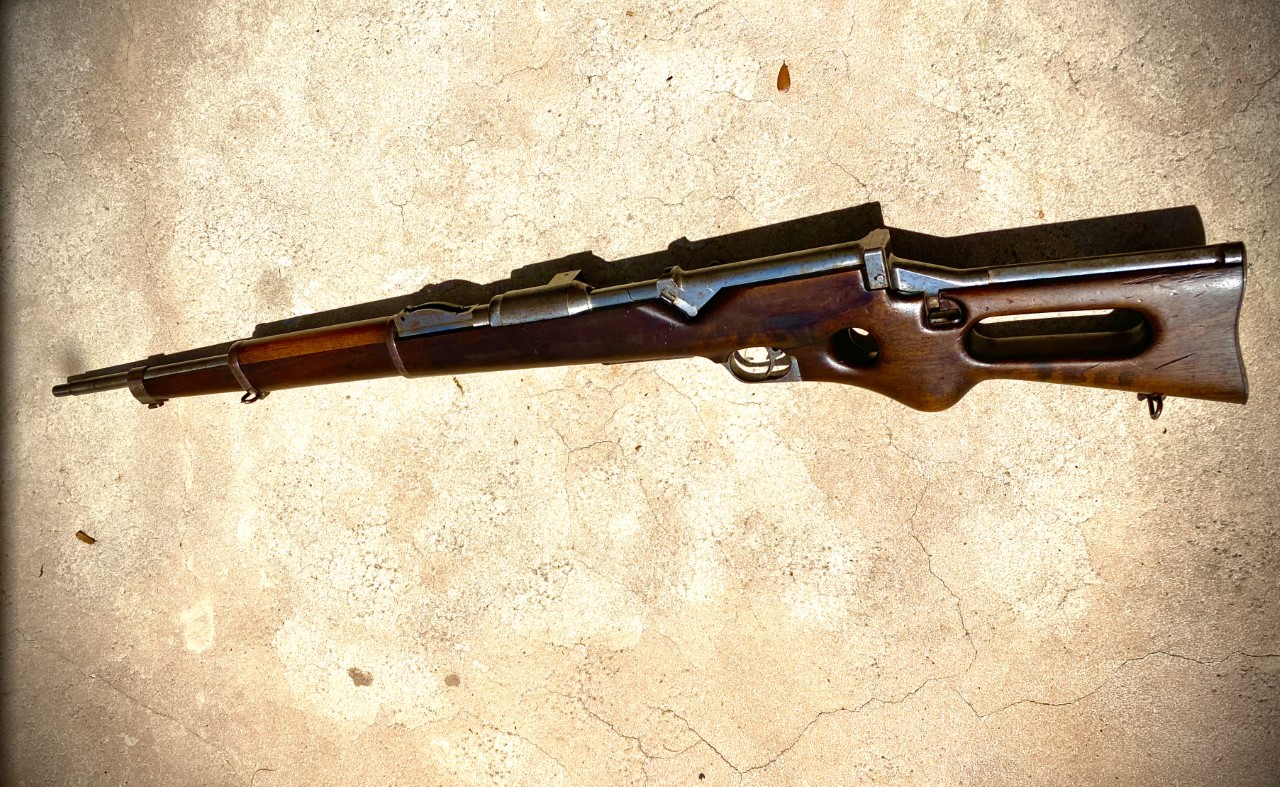 weapon: it is a prototype of a semi-automatic service rifle in the Belgian 7.65