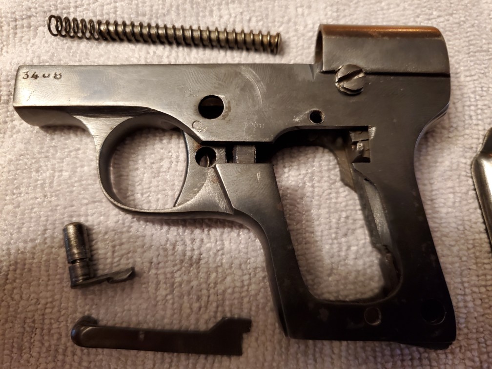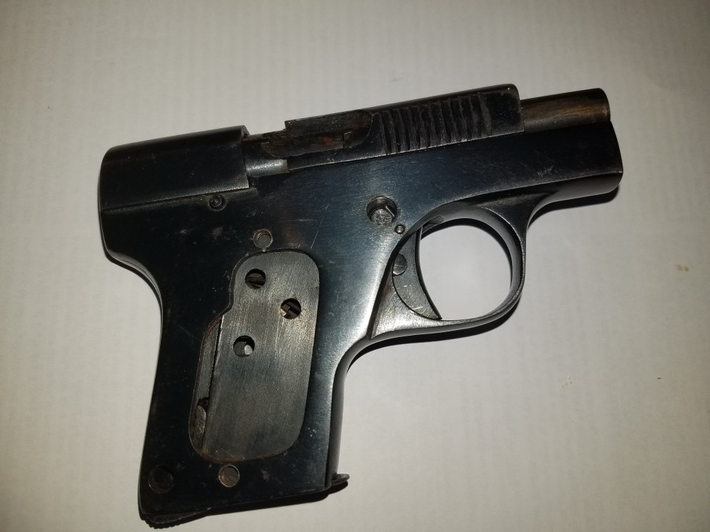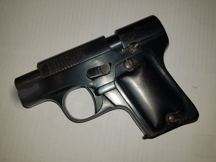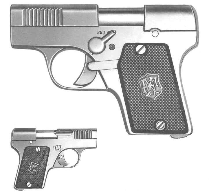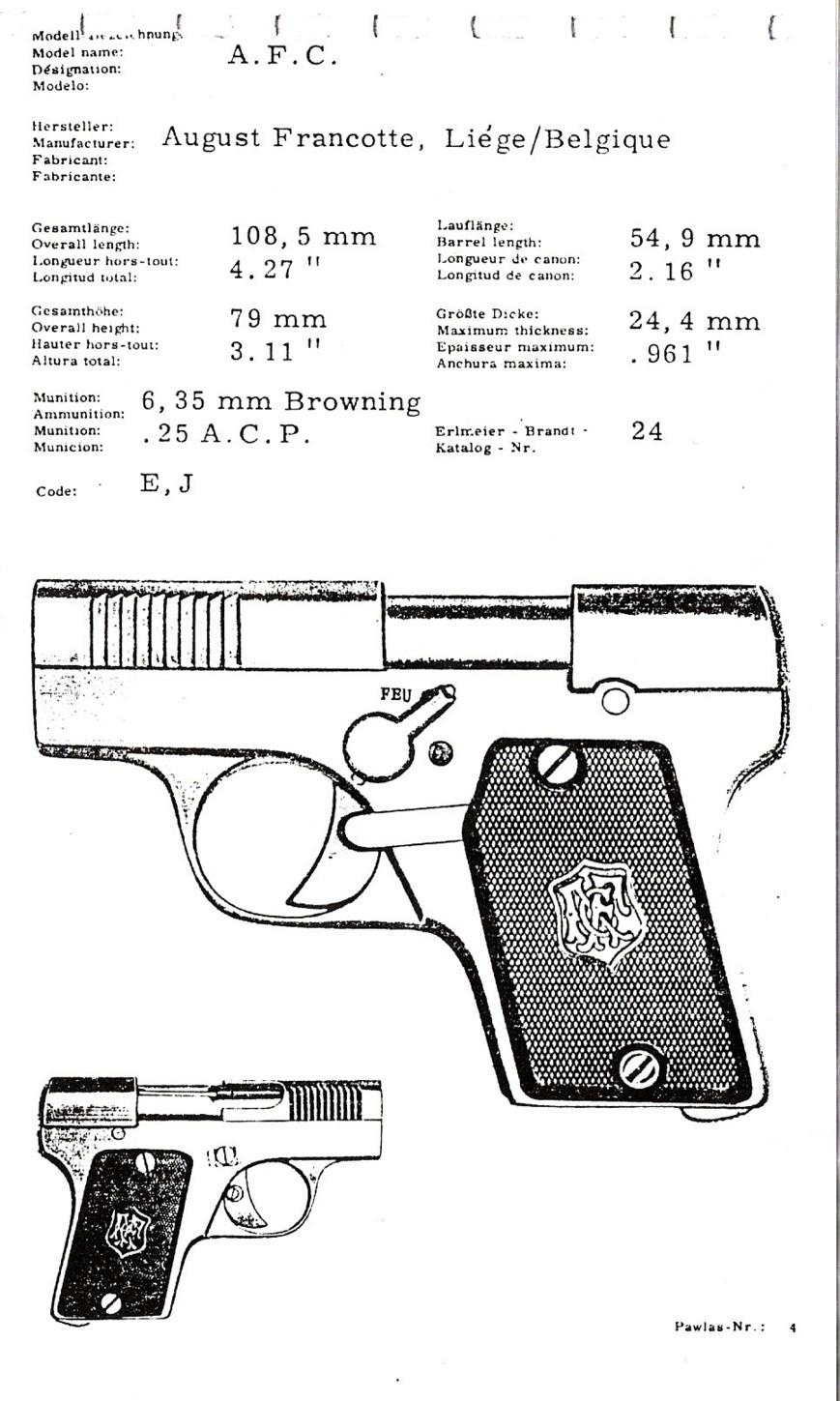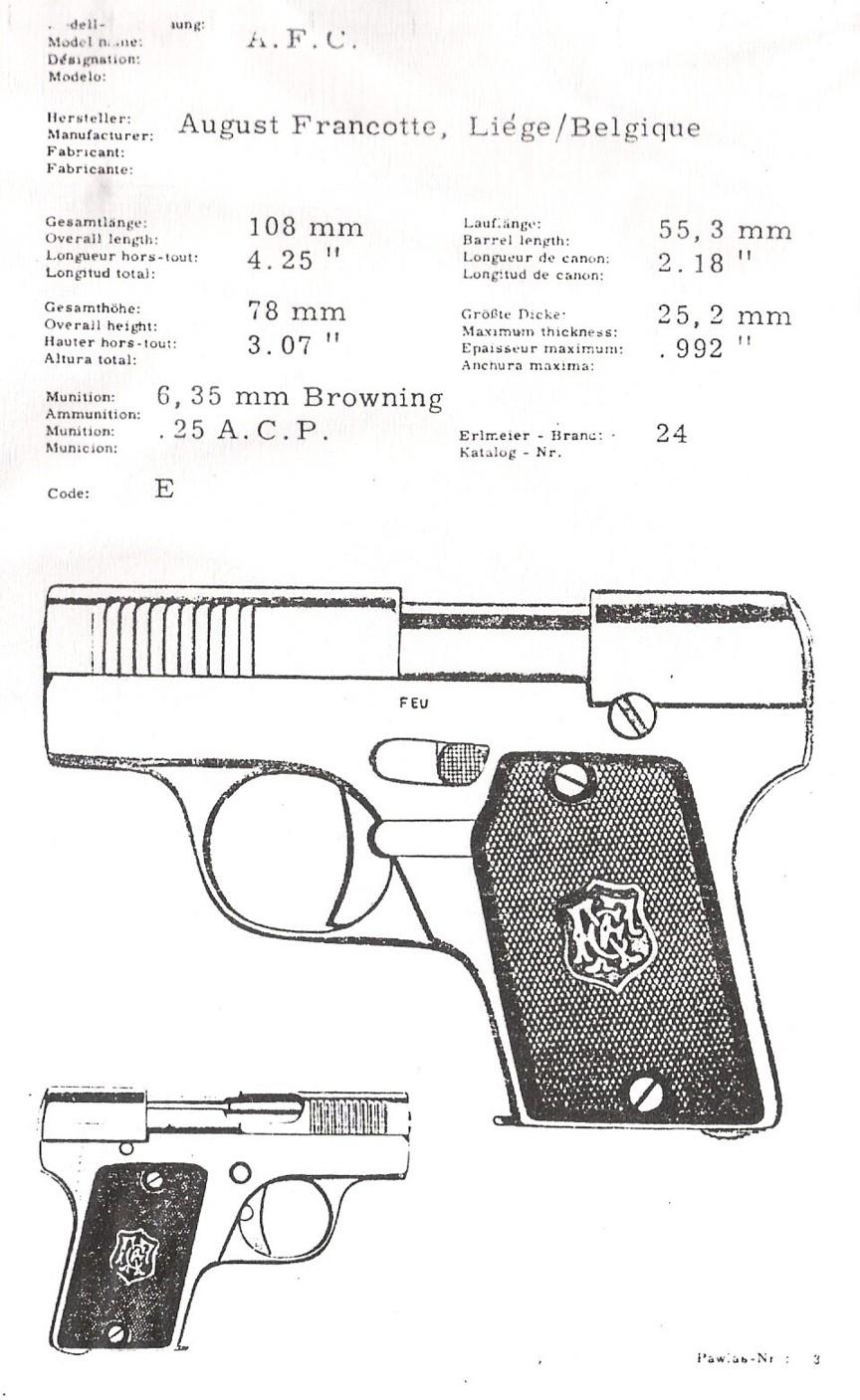 Here is a very little known pistol, produced by Auguste Francotte in calibre 6,35 Browning a little before the 1st GM. It is taken up in Zhuk's book p 181, which places him around 1912-1914. Another specimen is already on the site, complete with its grips plates and punches.