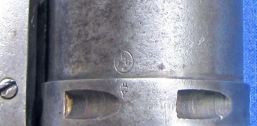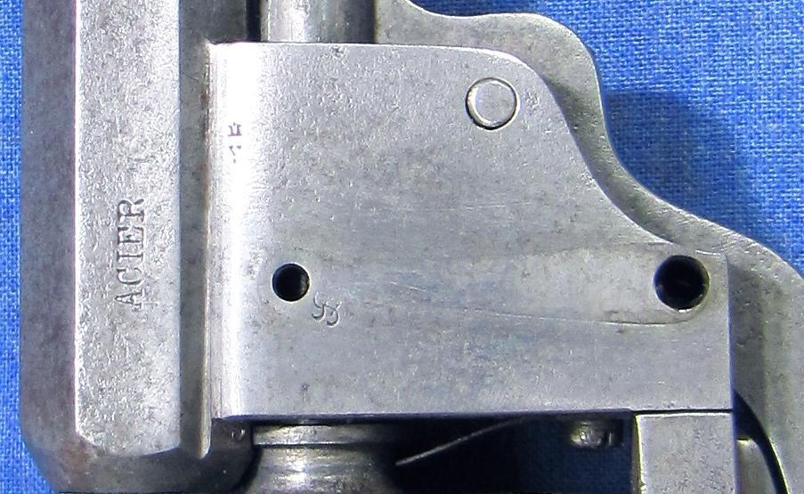 GD (en lettres anglaises sur la carcasse) : il pourrait s’agir de la marque de Gilles DECORTIS, armurier spécialisé en barillets mais cela reste à démontrer. Ce monogramme a été aperçu sur un revolver FAGNUS à chainette !