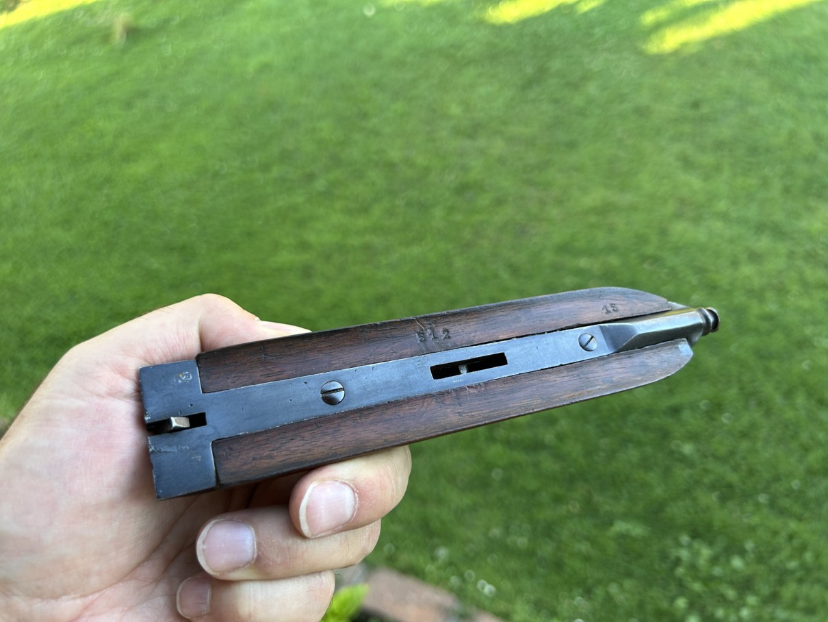 Le bout de ce canon et plus principalement la bouche arrondie du canon donne une information recoupée par la marque de l’inspecteur du Banc d’ épreuve de Liège, ce canon serait de la première génération de la fabrication de cette arme.