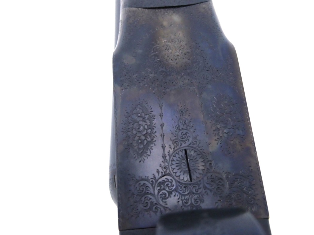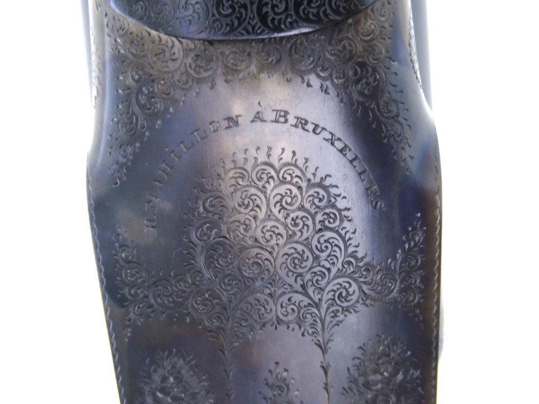 A mon humble avis, le fabricant n’est pas H.MAHILLON A BRUXELLES dont le nom est incrusté en fil d’or sur le canon. Ce genre de marquage luxueux était plutôt pratiqué par le revendeur.