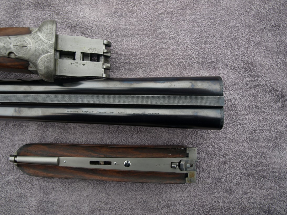Voici un beau juxtaposé à platines et crosse anglaise issu de la Fabrique Nationale de Herstal. Il a été présenté au Banc d’Epreuves en 1930. C’est un type de fusil de qualité qui a été produit par nombre d’autres maisons reconnues de l’industrie armurière liégeoise. On ne peut les citer toutes…