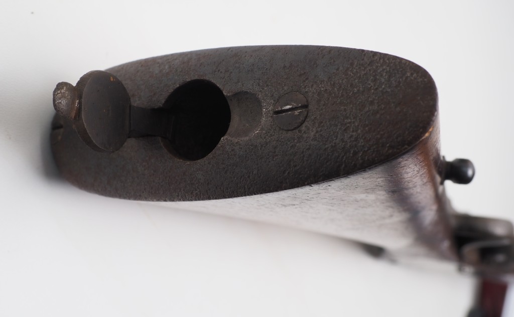 s'effectue en poussant vers le haut la partie avant du pontet ce qui permet son
