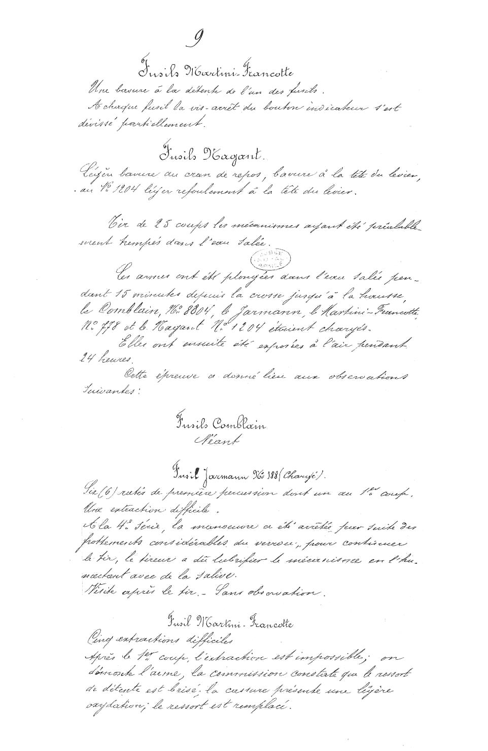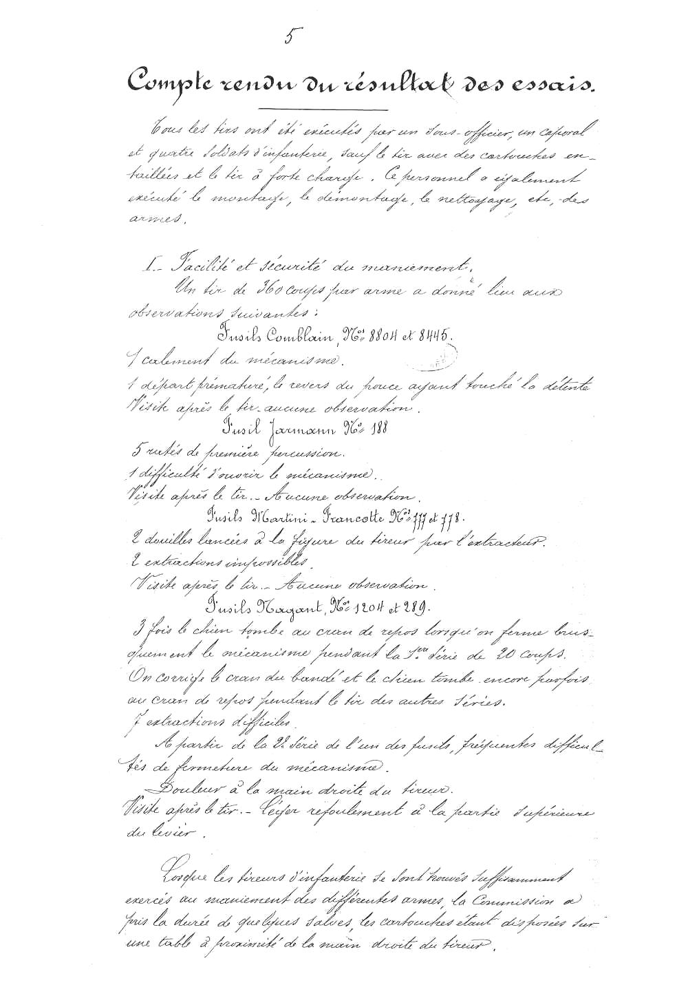 et pour n'en citer qu'un les essais avec le fusil Kropatschek au cours du mois