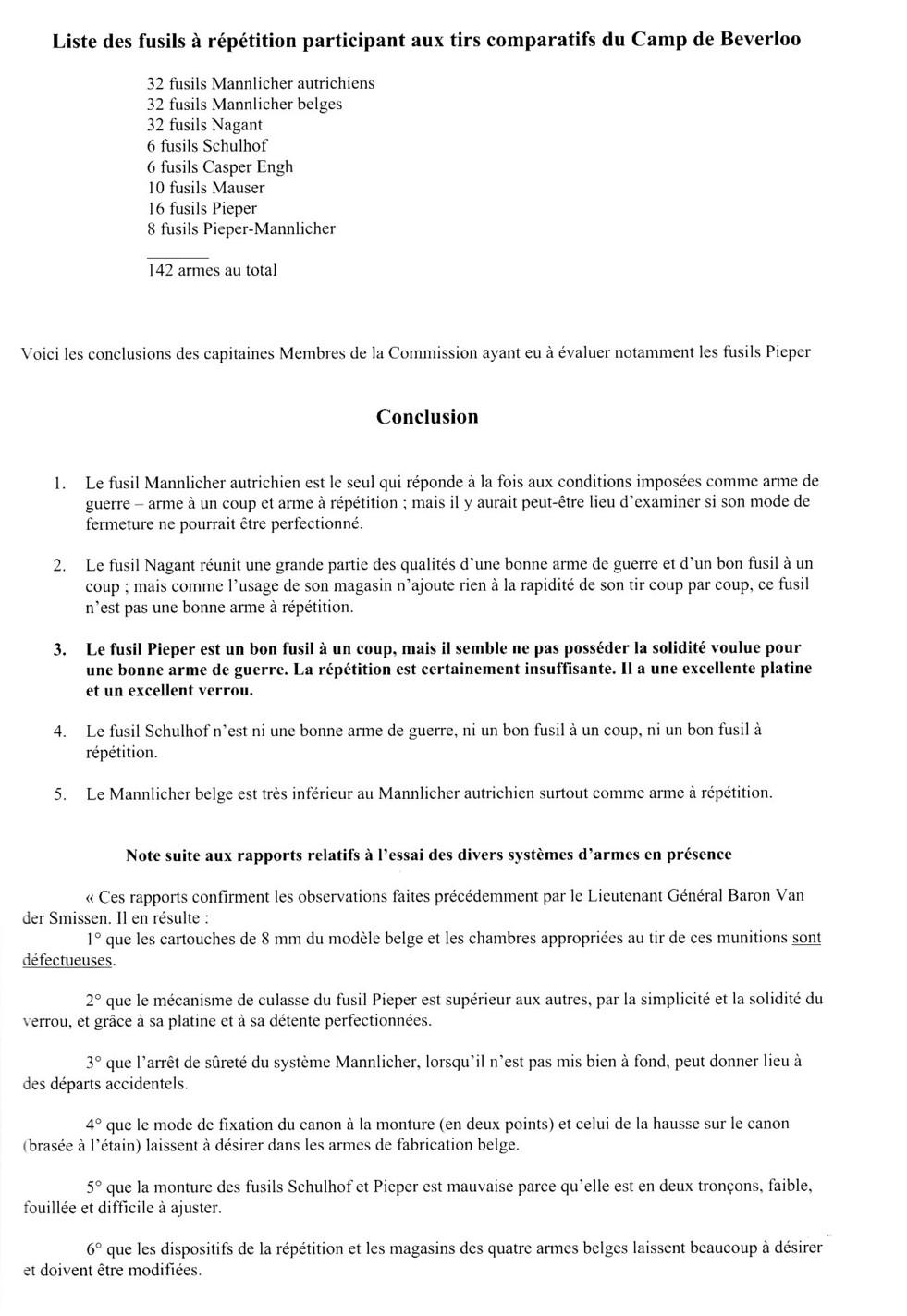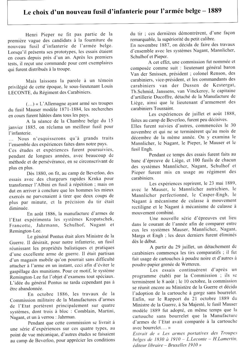 belge et autrichien, Schulhof, Pieper, Mauser 1888 et Engh.