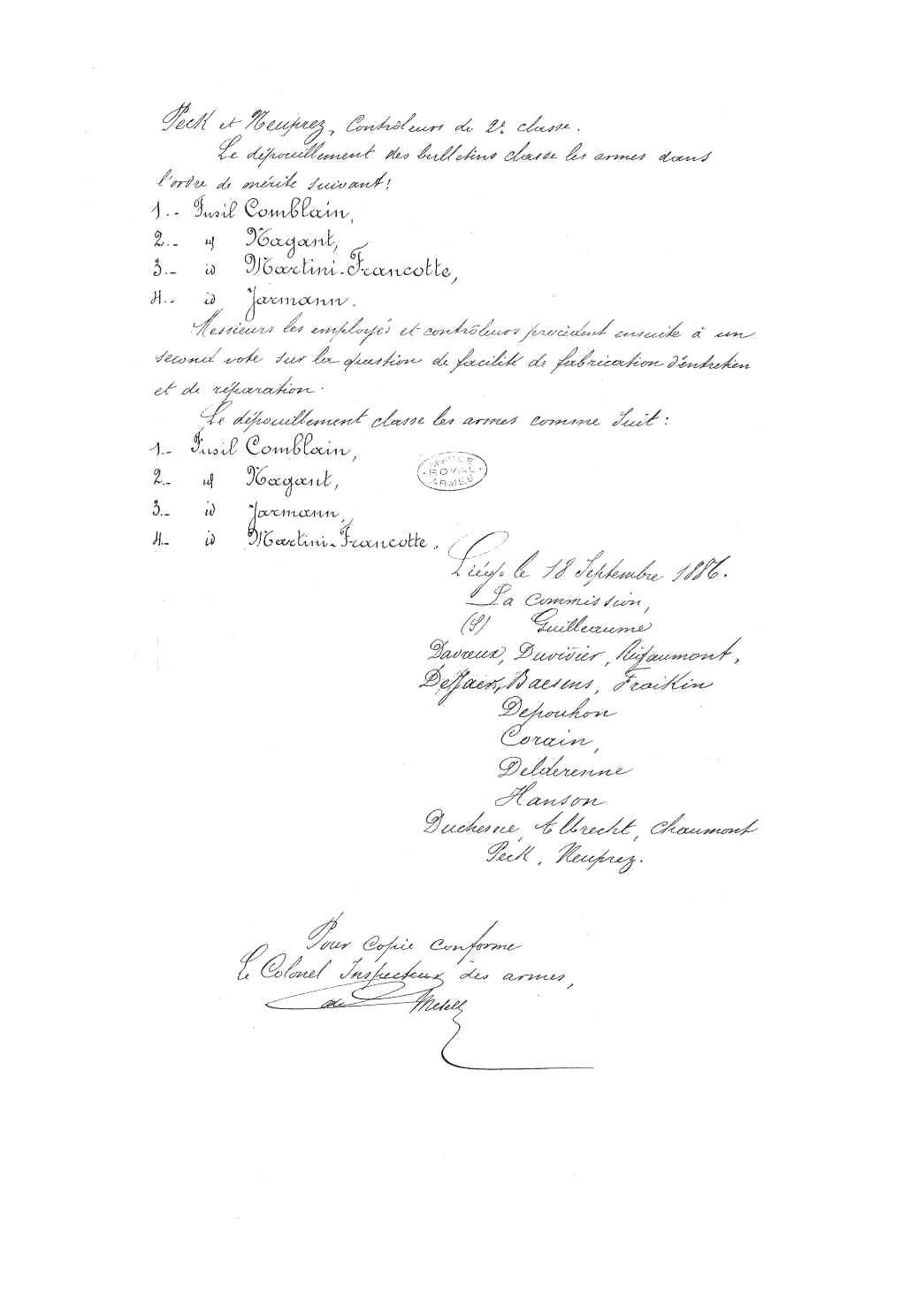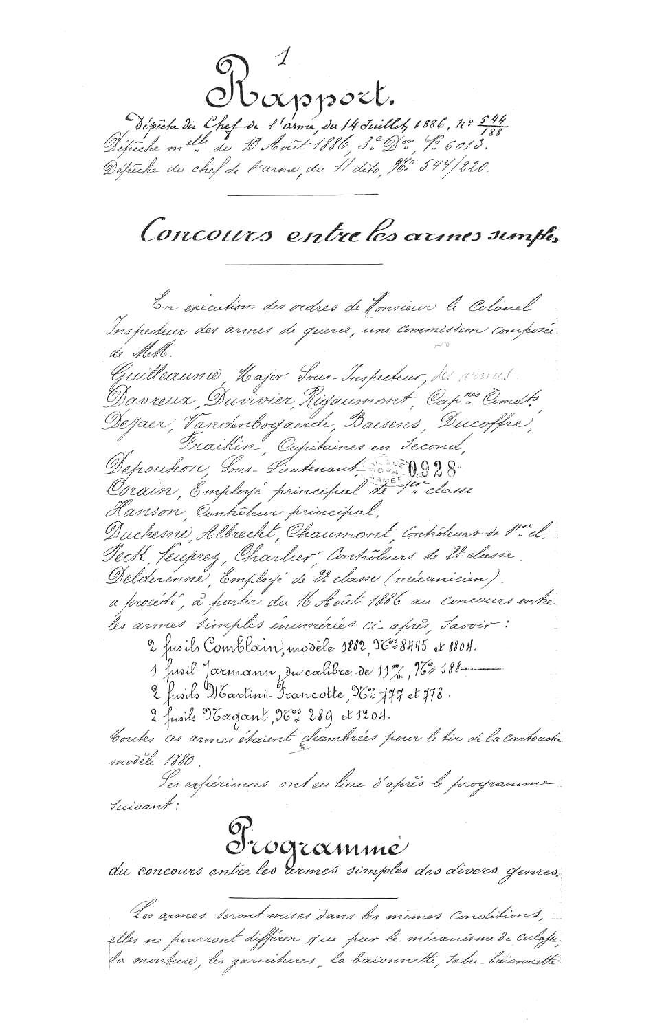 documents (Rapport du concours entre les armes simples - 18-09-1886), à titre