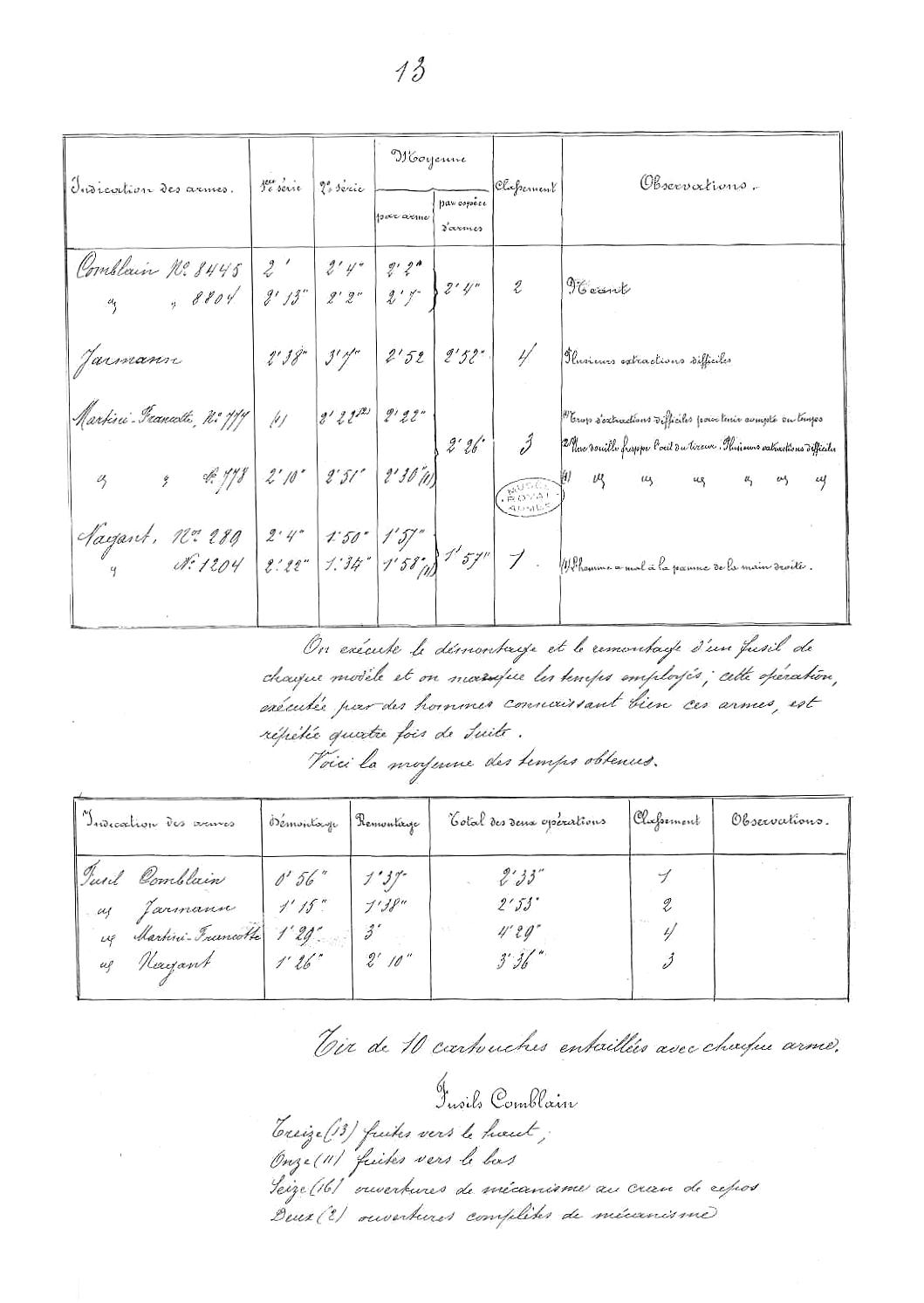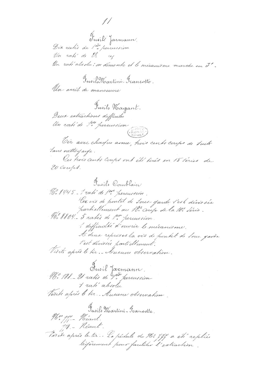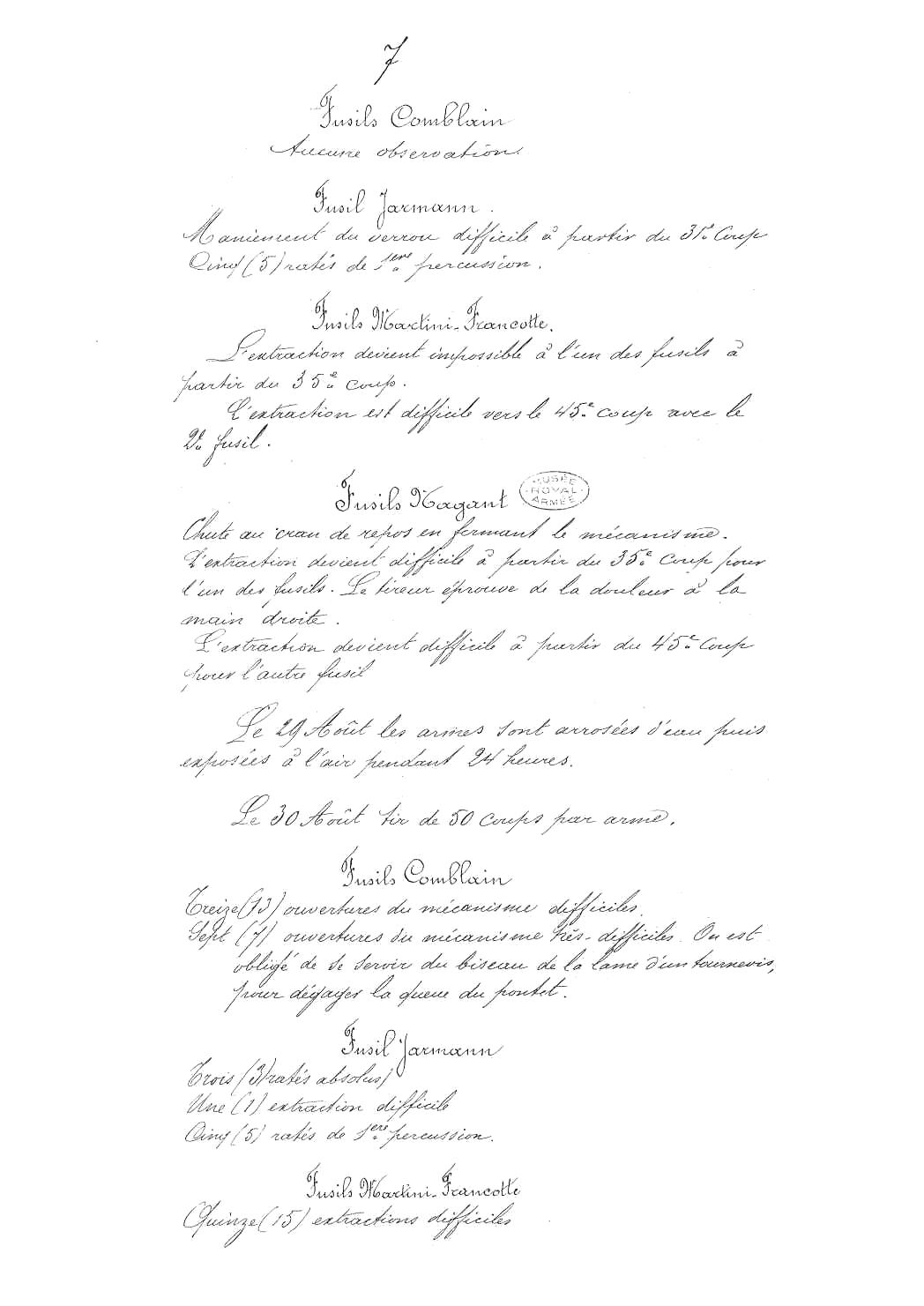 et pour n'en citer qu'un les essais avec le fusil Kropatschek au cours du mois